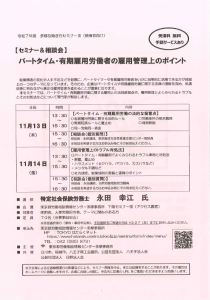 年末調整実務研修会 日 時 11月10日(月)午前の部10時~12時 午後の部14時~16時 〇〇〇〇11月12日(水)午前の部10時~12時 午後の部14時~16時 〇〇〇〇11月13日(木)午前の部10時~12時 午後の部14時~16時 〇〇〇〇11月17日(月)午前の部10時~12時 午後の部14時~16時 〇〇〇〇11月19日(水)午前の部10時~12時 午後の部14時~16時 会 場 東村山法人会館(東村山市本町1-23-6) 参加費 無 料 定 員 各回40名(先着順)☜詳しくは画像をクリック