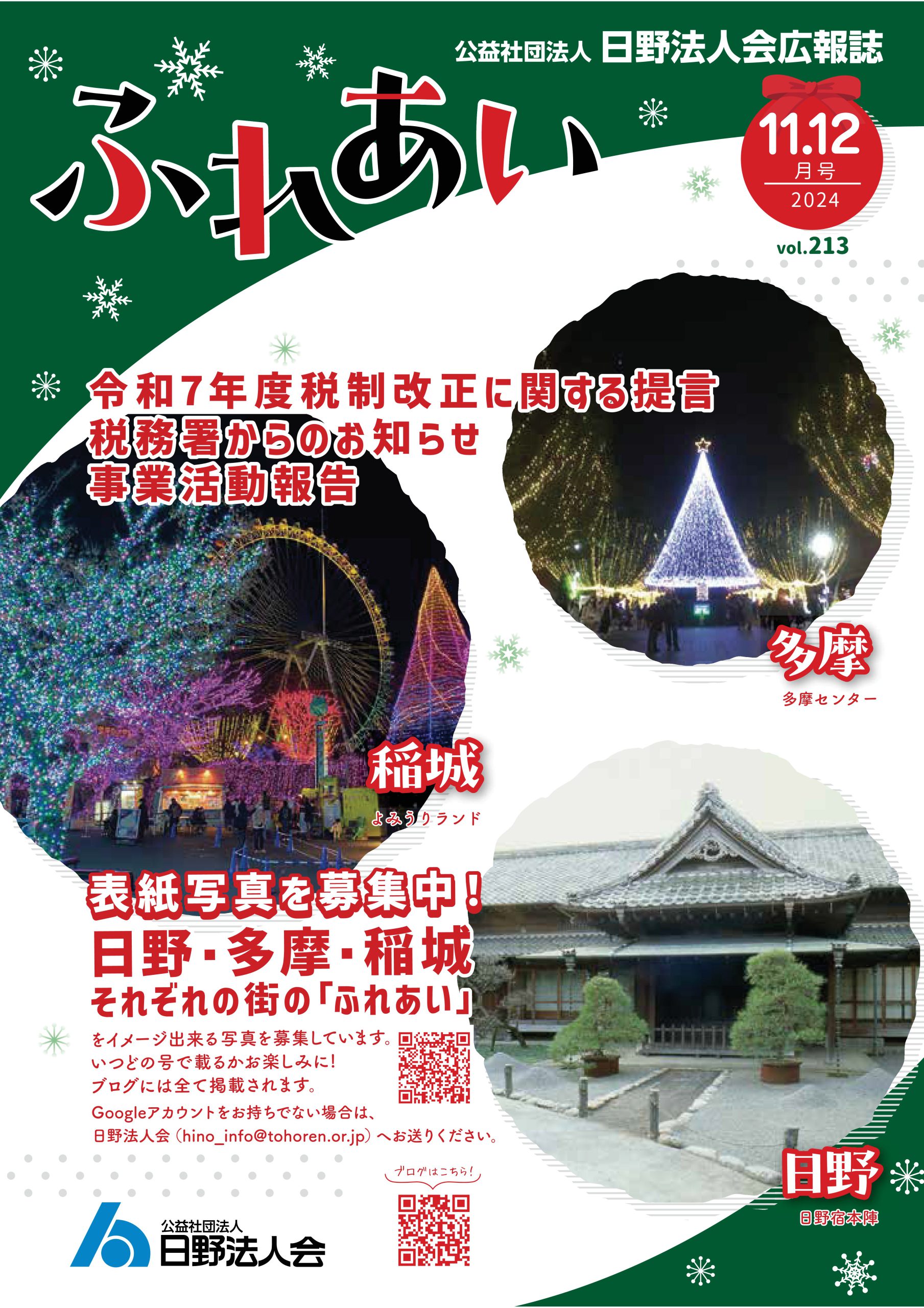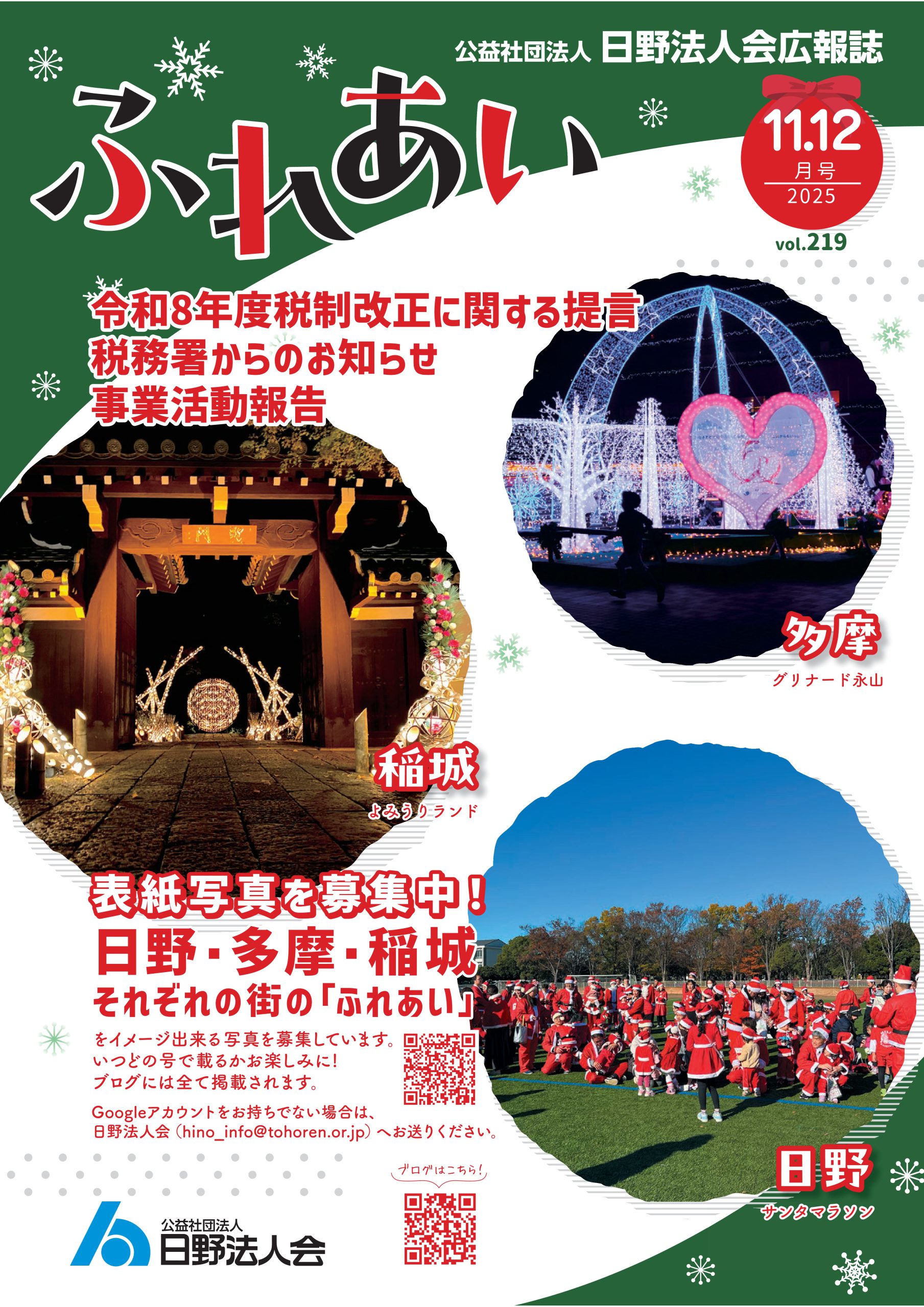 2025年 11-12月号 219号 本号(219号)から事業活動報告のQRコードをPCでクリックまたはスマホ・タブレットでQRコード画面をタップすると動画等が掲載されている「ブログ」へジャンプします。