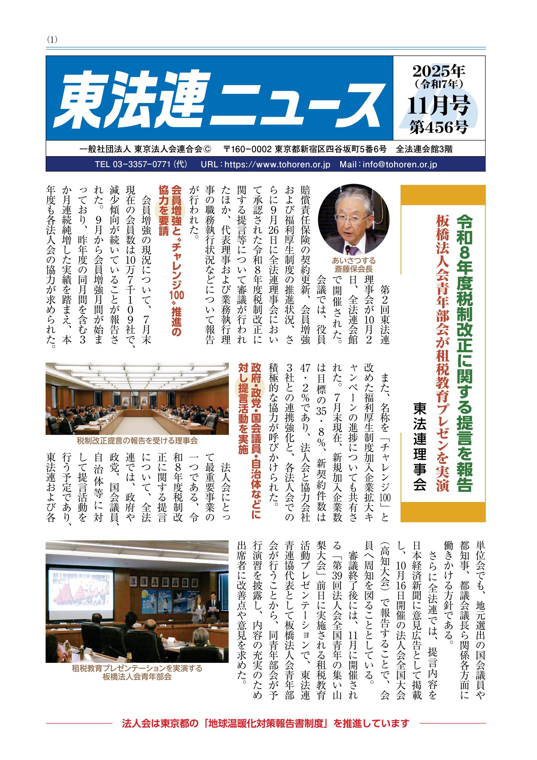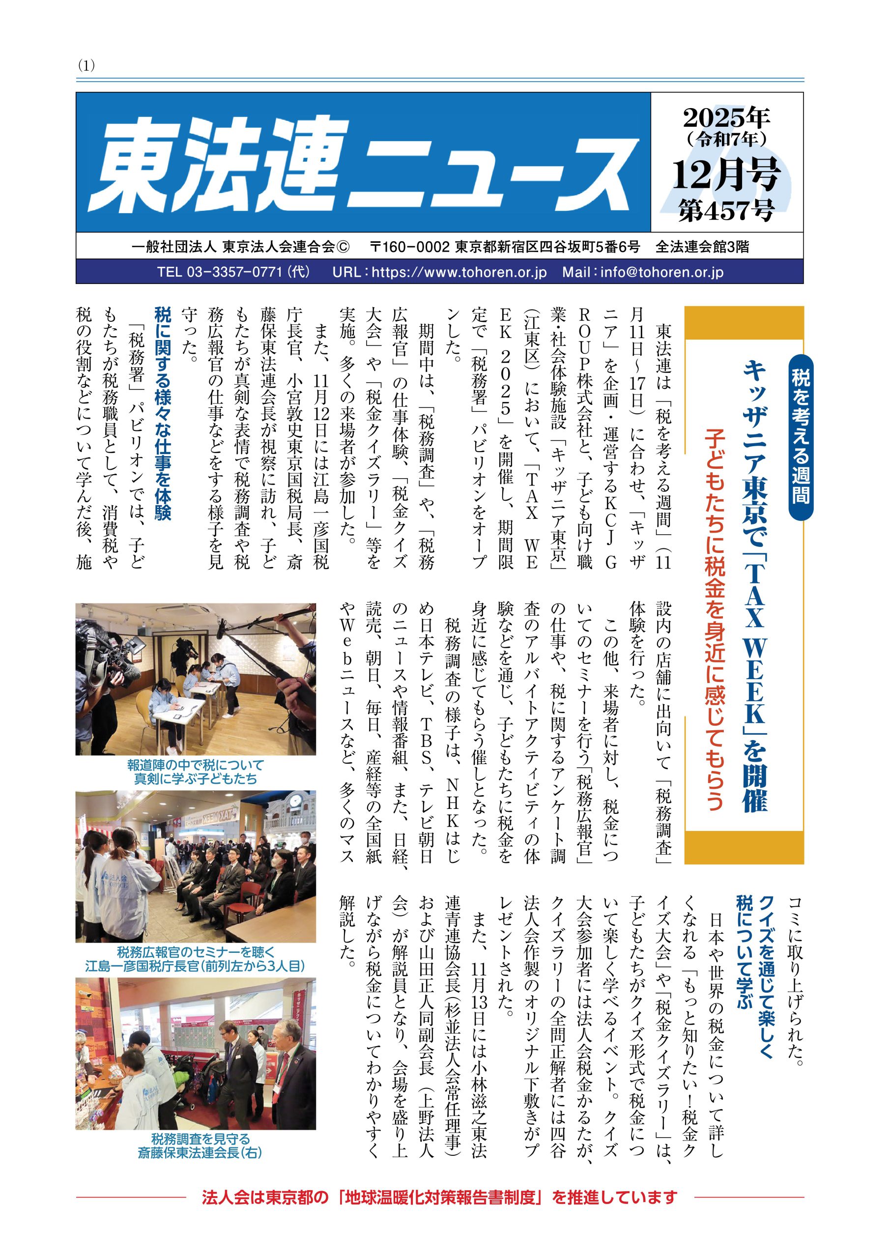 東法連にニュース12月号 2025年12月3日 東法連ニュース 11月号 2025年11月7日 東法連ニュース 9.10月号 2025年9月18日2025年9月18日 東法連ニュース 7.8月号 2025年7月10日2025年7月10日 税理士会日野支部主催「相続税申告に関する無料相談会」 2025年7月8日 税理士会日野支部主催「相続に関する無料相談会」 2025年7月8日2025年7月8日 令和7年度税に関する無料相談会 東京税理士会日野支部主催 2025年2月26日2025年2月26日 成年後見制度に関する無料相談会 2024年7月10日 相続税申告に関する無料相談会 2024年7月10日2024年7月10日 税理士による、くらしの税金や相続に関する無料相談会 2024年7月10日2024年7月10日 LAFORETCLUB INFORMATION WINTER 2023年11月27日 2023.12-2014.2 幻想的な風景と極上の温泉 幻想の贅沢はそこに スポーツクラブメガロス優待チラシ 2023年7月1日2023年7月6日 野村不動産ライフ&スポーツ株式会社 生活習慣病予防検診のご案内 めぐみ会 2023年5月16日 ラフォーレ倶楽部 2023年度保存版 2023年3月1日2023年3月1日 がん検診(Bコース)のご案内 2023年1月31日 大和会 健康診断のご案内 スペシャルドックコース 2023年1月31日 行動する法人会 令和5年度税制改正に関する提言 2022年12月13日2022年12月23日 きらぼし銀行「脱炭素応援ローン」 2022年8月26日 健診のご案内 英世会クリニック 2022年8月17日 法人会 Audi Japan優待プログラムのご案内 2022年7月28日2022年7月28日 ネットが便利 申告・納税 e-Tax 2022年5月30日 令和3年度 税に関する絵はがきコンクール 日本政策金融公庫 ダイレクト 2022年3月23日2022年3月23日 日本政策金融公庫 中小小売商業活性化フォーラム 2022年1月18日2022年1月18日 東京都産業労働局 新型コロナウイルス 抗体検査 全日本労働福祉協会 2021年8月18日2021年8月18日 採血だけで検査できます 法人会貸倒補償制度 三井住友海上火災保険株式会社 2021年6月12日2021年6月17日 新型コロナウィルス感染症の影響を受ける法人会 会員の皆様へ(10/2現在) 政府系金融機関 支援機関等の施策のご案内 東京法人会連合会 2021年6月10日2021年6月22日 法人会会員限定 ビジネス情報誌 特別購読のご案内 東京法人会連合会 2021年6月9日2021年6月22日 「新型コロナウィルス 健康相談ダイヤル」緊急開設のご案内 大同生命保険株式会社 AIG損害保険株式会社 2021年6月3日2021年6月22日 ぽっと一息お届け隊 緊急!!新型コロナウィルス感染対策 『強酸性水お届け隊!』を結成 2021年5月29日2021年6月22日 脳ドックのご案内 医療法人社団 めぐみ会 田村クリニック 2021年5月28日2021年6月22日 1 2 次へ →