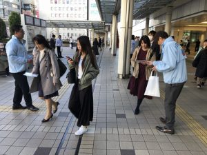 立川駅での「納税キャンペーン」参加した東法連青連協執行部と 「日野、立川、青梅、町田、八王子」各単位会青年部会のメンバーとともに |