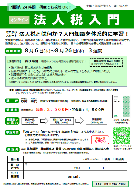 8/6~ オンライン『法人税入門』