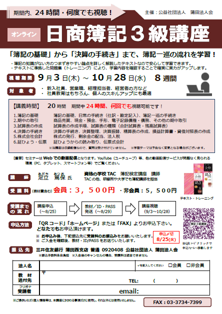 9/3~ オンライン『日商簿記3級講座』