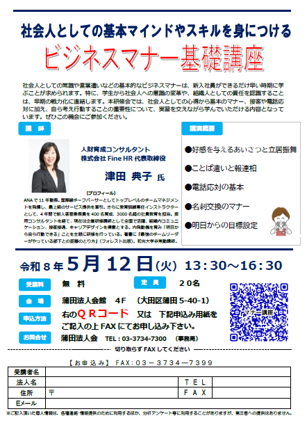 蒲田法人会では、会員の皆様へのサービスの充実を図っていくため、今後はITを活用した会運営を行って参ります。メールアドレスを登録して頂くことで、タイムリーな情報をお届けすると同時に、行事予定のご案内から受信メールからの参加回答などをスマホからでも可能となります。