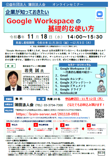 「タイトルをクリックして申込入力画面よりお申込み下さい。」 開催日:11月18日(水) 14時00分~15時30分