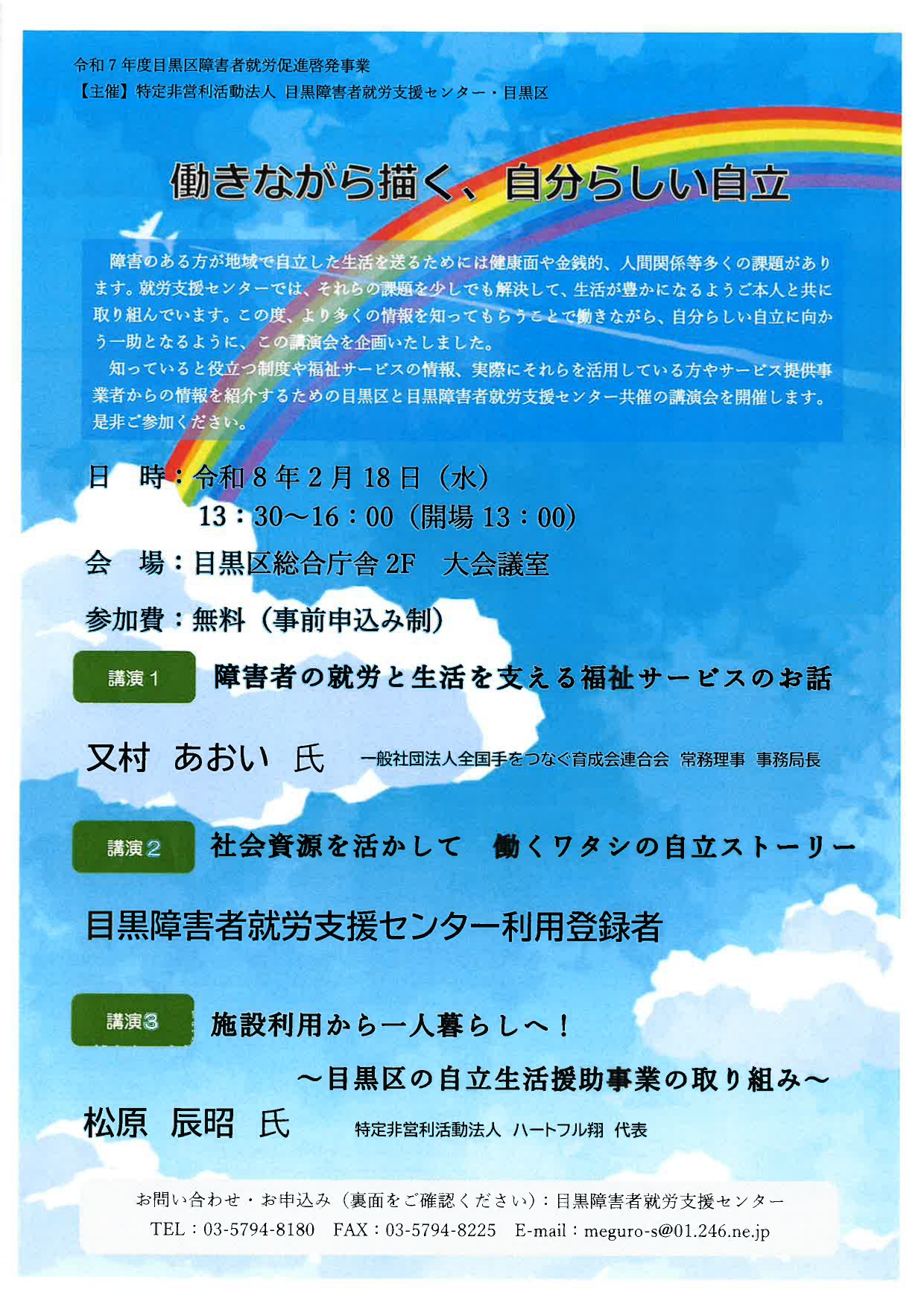令和7年度目黒区障害者就労促進啓発事業講演 「働きながら描く、自分らしい自立」