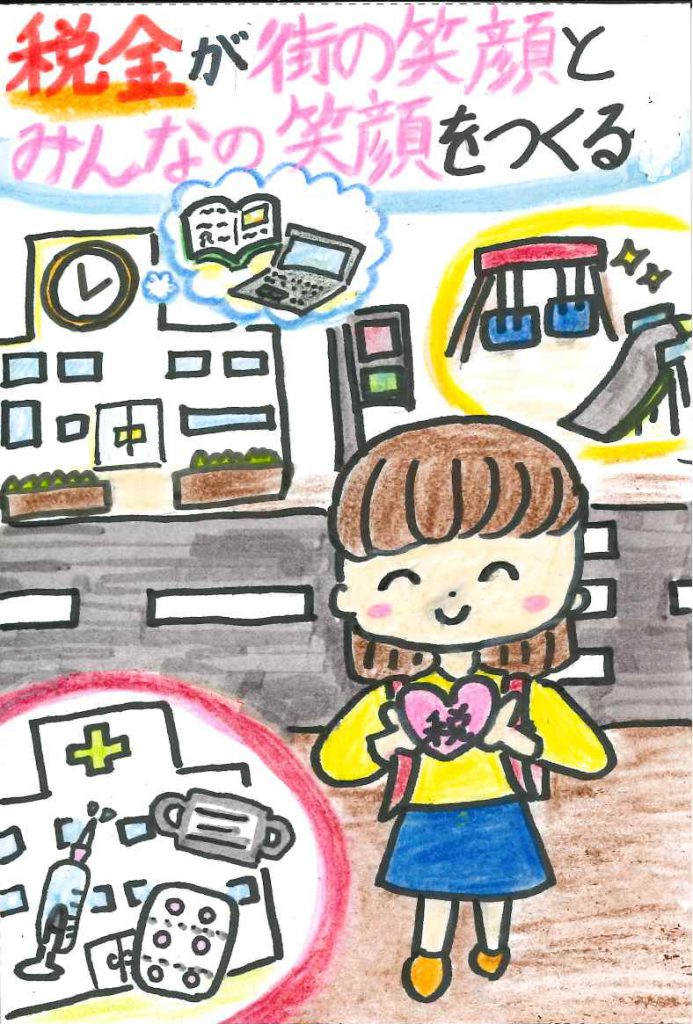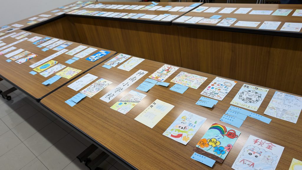 租税教室などを通じて、学童に”税の大切さ”や”税の果たす役割”について学んでもらい、その知識や感想を”絵はがき”にすることで、税に対する理解をより深めてもらうことが目的です。