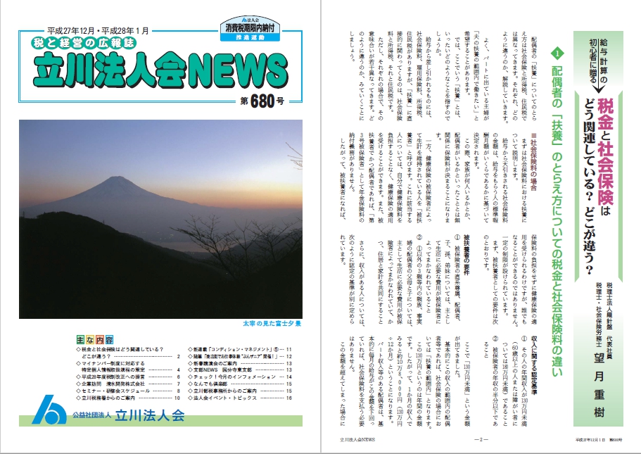 平成27年12月・平成28年1月 立川法人会NEWS 第680号